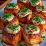 Sie sind fantastisch, um Lachs auf neue Weise zu genießen, besonders für Fisch-Skeptiker. Die Kombination aus knuspriger Hülle und umhüllender Soße macht den Lachs zugänglich und unwiderstehlich. Bereiten Sie sich auf Lobeshymnen vor und teilen Sie das Rezept oft. Diese Lachs-Kreation ist mehr als ein Gericht; sie ist ein Erlebnis, das Freude bereitet und die Herzen erobert.
