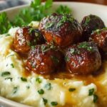 Dieses Rezept ist wie ein warmer Sommertag im Hochsommer oder ein gemütlicher Abend am Kamin im Winter – immer passend, immer willkommen. Es verbindet die besten Komponenten: saftige, aromatische Fleischbällchen, die in einer reichhaltigen Soße baden, gepaart mit einem cremigen Knoblauch-Kräuter-Kartoffelpüree, das einfach dahinschmilzt. Bereiten Sie sich auf ein echtes Geschmackserlebnis vor!
