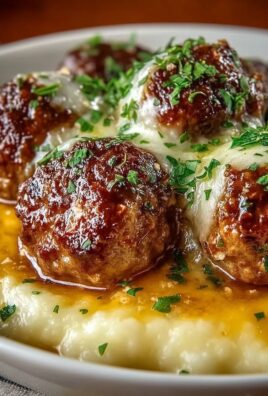 Der Duft von geschmortem Fleisch und cremigem Kartoffelpüree, vermischt mit einem Hauch Knoblauch und frischen Kräutern, steigt in die Nase und verspricht puren Genuss. Erinnern Sie sich an jene Sonntage, als ein deftiges Gericht die ganze Familie zusammenbrachte? Genau dieses Gefühl zaubern unsere Salisbury-Steak-Fleischbällchen mit Knoblauch-Kräuter-Kartoffelpüree auf den Tisch. Vergessen Sie langweilige Abendessen! Heute entführen wir Sie in eine Welt voller Geschmack, Komfort und einem Augenzwinkern, denn dieses Gericht ist nicht nur ein Gaumenschmaus, sondern auch ein echtes Stimmungsaufheller. * Dieses Gericht lässt sich überraschend einfach zubereiten und ist perfekt für gemütliche Abende, wenn der Hunger groß und die Zeit knapp ist. * Die Kombination aus saftigen Fleischbällchen in reichhaltiger Soße und dem samtigen Kartoffelpüree bietet ein ausgewogenes Geschmackserlebnis. * Die ansprechende Präsentation macht dieses Gericht zu einem Highlight auf jeder Tafel, das sowohl Augen als auch Gaumen verwöhnt. * Es bietet zahlreiche Möglichkeiten zur Anpassung, sodass Sie es mit verschiedenen Beilagen und Gewürzen immer wieder neu entdecken können.